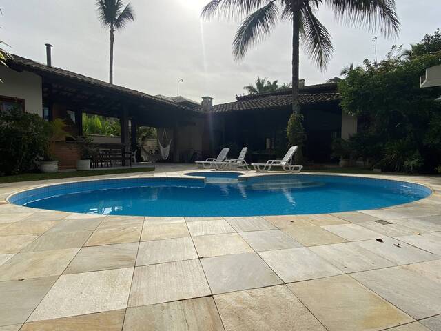 Esta casa moderna na Riviera de São Lourenço conta com 5 suítes espaçosas, proporcionando máximo conforto e privacidade para todos os hóspedes.